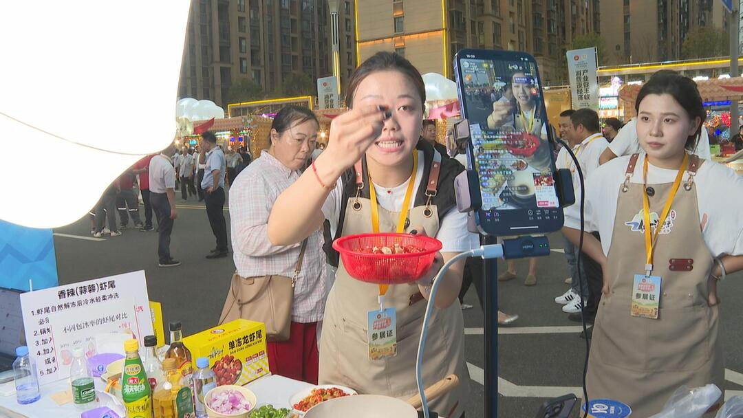 江西虾谷修滋味主播李双璇说:“今天,我们带着我们的‘当家花旦’,就是我们家热度非常高的爆款龙虾尾来了,能明显感觉到我们家的销量和在线人数比平时多了50%以上,现场的人流量就能看得出来,现场也热闹,线上也热闹。”