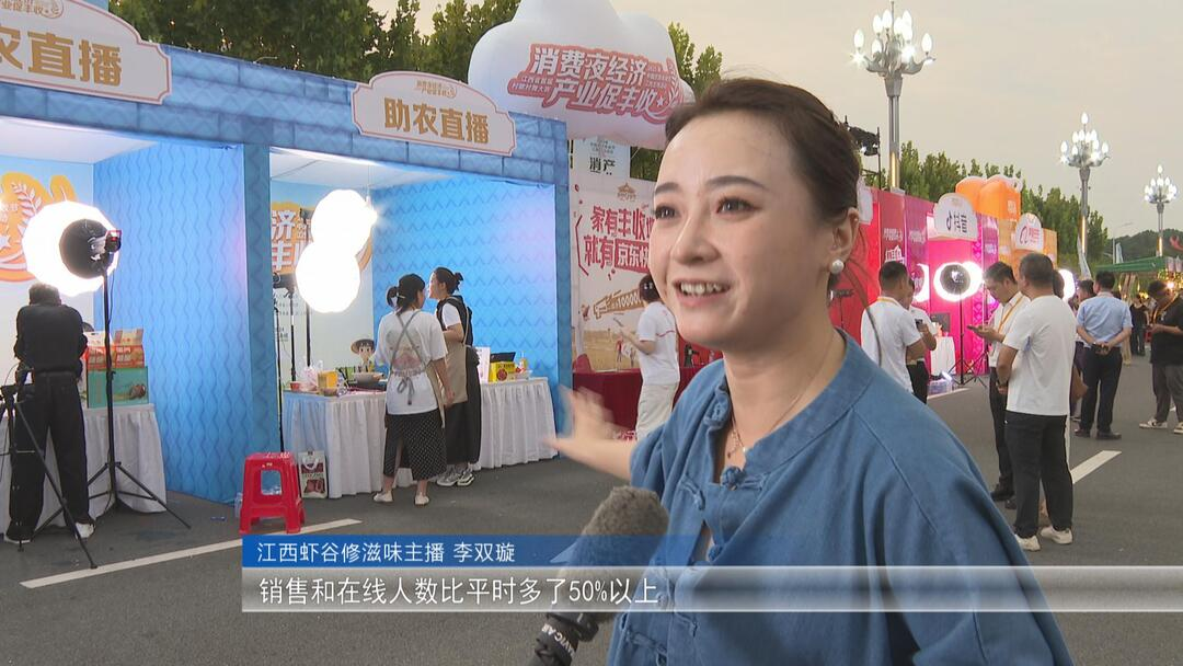 夜色渐浓,活动现场依然灯火如昼。从白天到深夜,从田间到云端,消费新业态勾勒出更浓墨重彩的赣鄱大地丰收图景。